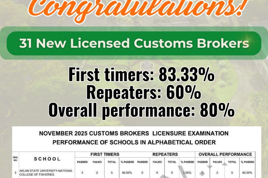 ASU proudly celebrates the strong performance of its examinees in the November 2025 Customs Brokers Licensure Examination: