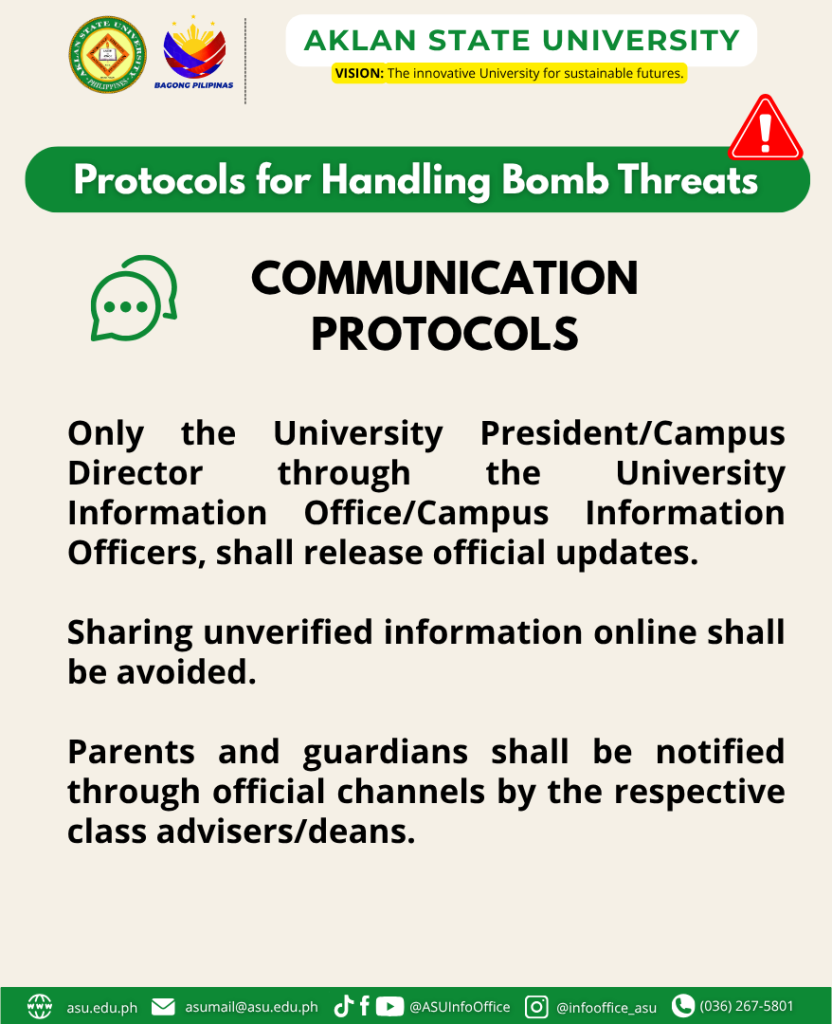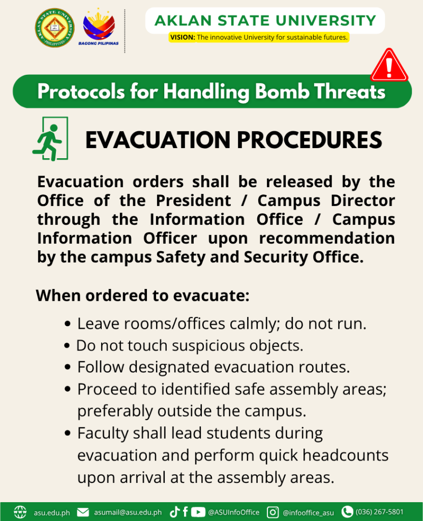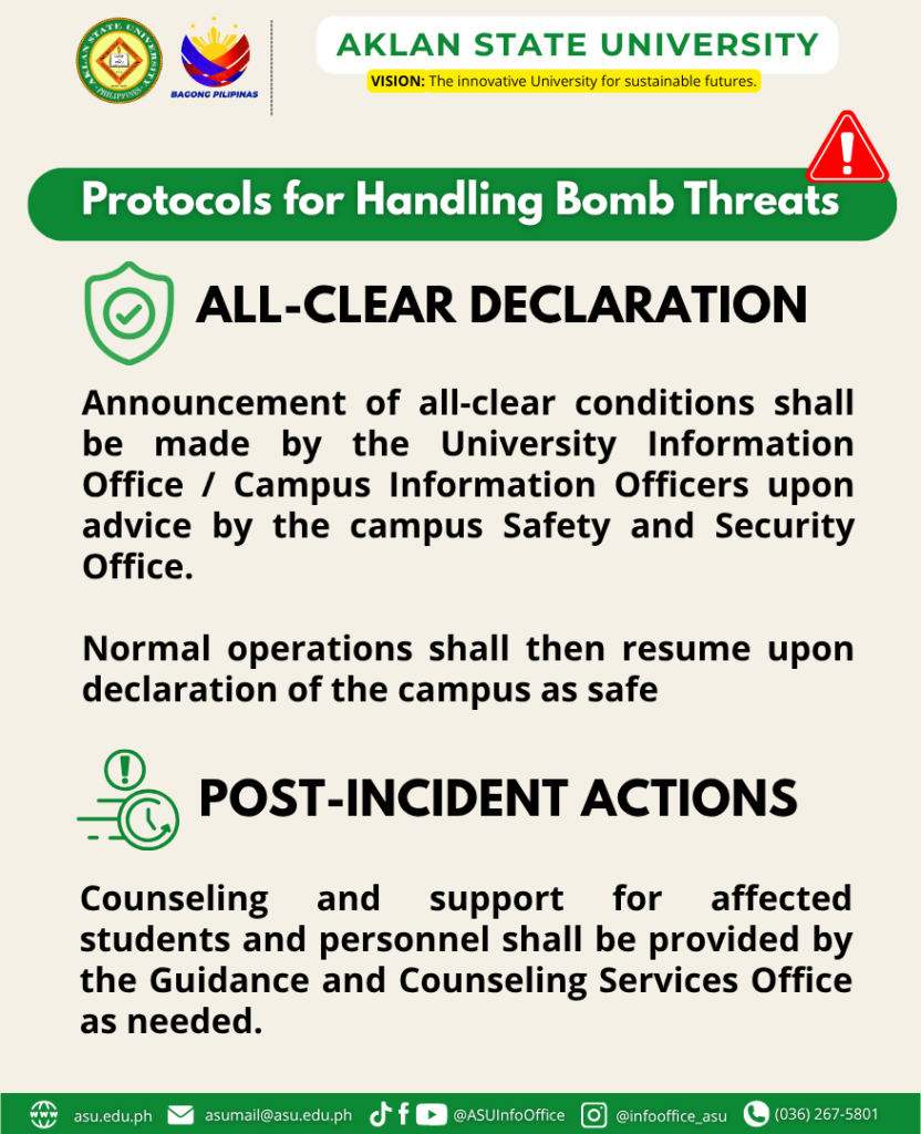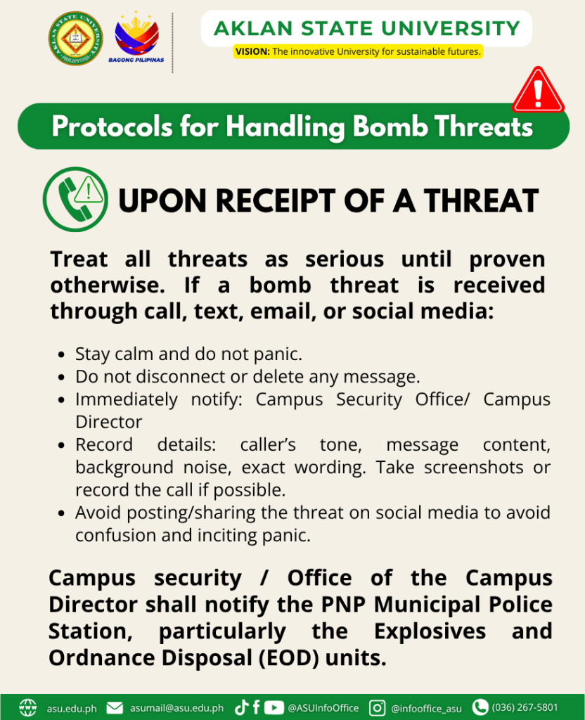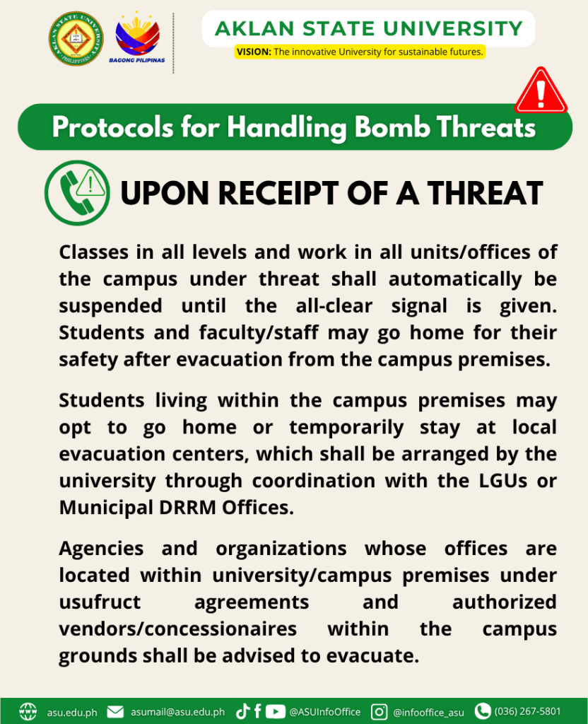In view of the increasing number of bomb threats that have been leveled at Higher Education Institutions (HEIs) in Western Visayas for the past few weeks, it is imperative that the university be prepared for similar situations should they happen.