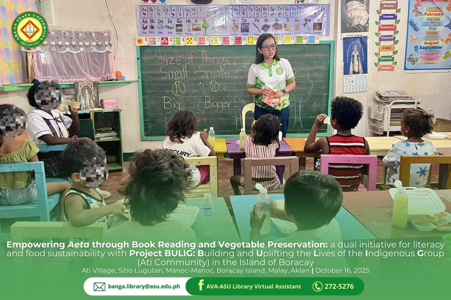 The ASU Banga Library collaborated with ๐๐ง๐ค๐๐๐๐ฉ ๐ฝ๐๐๐๐: ๐ฝ๐ช๐๐ก๐๐๐ฃ๐ ๐๐ฃ๐ ๐๐ฅ๐ก๐๐๐ฉ๐๐ฃ๐ ๐ฉ๐๐ ๐๐๐ซ๐๐จ ๐ค๐ ๐ฉ๐๐ ๐๐ฃ๐๐๐๐๐ฃ๐ค๐ช๐จ ๐๐ง๐ค๐ช๐ฅ on October 16, 2025. The team visited the Ati Village (Sitio Lugutan, Manoc-Manoc) to bring the joy of reading through a ๐ฏ๐ผ๐ผ๐ธ ๐ฑ๐ผ๐ป๐ฎ๐๐ถ๐ผ๐ป ๐ฎ๐ป๐ฑ ๐ฎ ๐ฐ๐ฎ๐ฝ๐๐ถ๐๐ฎ๐๐ถ๐ป๐ด ๐๐๐ผ๐ฟ๐๐๐ฒ๐น๐น๐ถ๐ป๐ด ๐๐ฒ๐๐๐ถ๐ผ๐ป by Maโam Bliss Magdael. This initiative supports the indigenous Ati Community in Malay, Aklan.